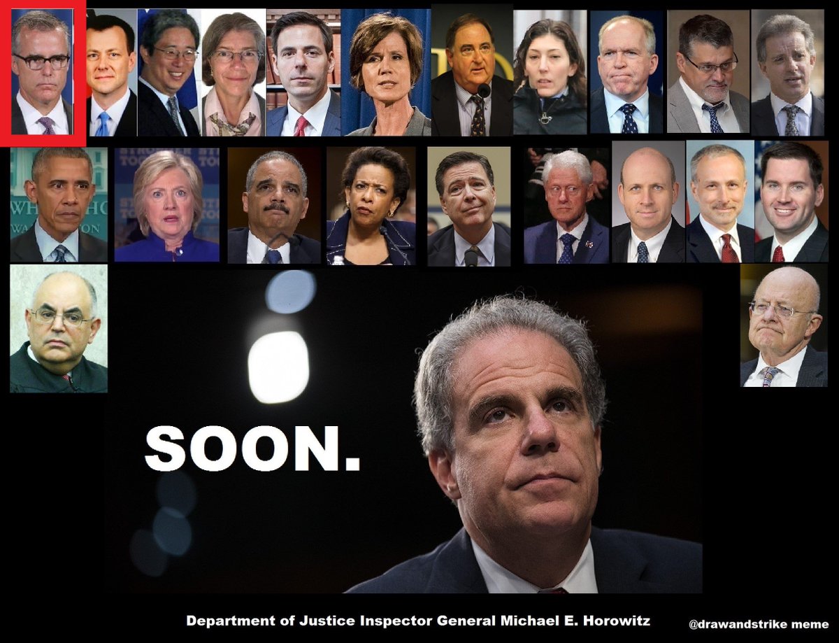 Everything you know about the ‘Crossfire Hurricane’ plot, the insurance policy, it’s ALL from Horowitz’s digging. He found it first and then he passed it off to Congress. Peter Strzok, Lisa Page, Andrew McCabe, Bruce & Nellie Ohr. While he was digging, NOBODY WAS WATCHING HIM. What was everybody watching from January 2017 to October 2017, when Horowitz & his team of DOJ investigators suddenly broke the surface & began passing to Congress what they found?
