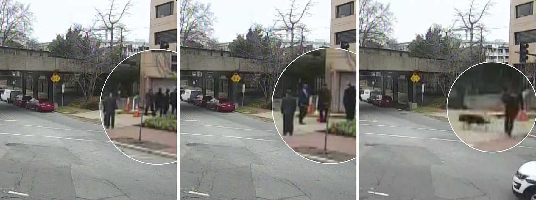 Security video shows 10 Secret Service agents walking onto the DNC driveway after walking past the bomb just before 8:22 a.m. After about two minutes, most of the agents walked back toward the bomb in the direction of a building entrance.