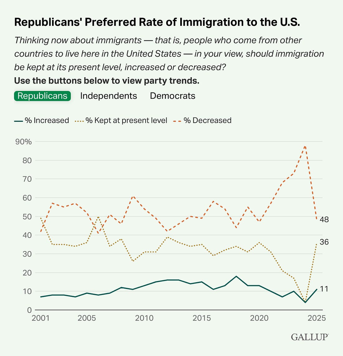 It’s also rare, maybe even unprecedented, to see Trump’s base stand up to him in such a fashion. But the Epstein issue is just a symptom of deeper discontent people have with the president, as opposed to candidate Trump. Support for Trump’s immigration policies, his signature issue, is collapsing, recent polls suggest.