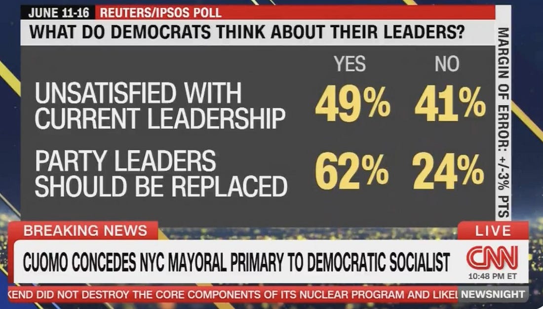 In a lot of ways, the intransigence by party leaders makes sense because this battle is existential for them. Polling shows that a majority of Democrats want to kick their party leaders to the curb. If the Mamdanis of the world keep winning, that’s what will happen.
